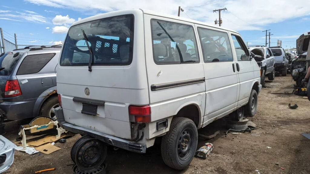 Volkswagen is once again in the van-selling business in the United States, after a best-forgotten period of attempting to sell rebadged Chrysler minivans plus the occasional teasing of vans that we never got here. The last gasp for the good old VW Transporter aka VW Bus here was the fourth-generation model, known in North America as the EuroVan and sold from the 1992 through 2003 model years. Here’s a first-year EuroVan, found in a Denver-area knacker’s yard recently.