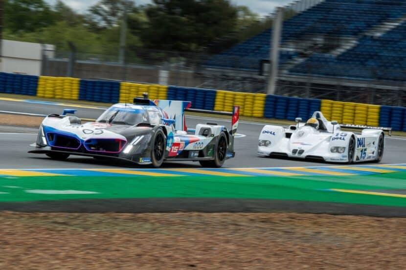 In the meantime, the two have shared the track for a photoshoot. The #15 V12 LMR was driven to victory in 1999 by Joachim Winkelhock, Pierluigi Martini, and Yannick Dalmas. The M Hybrid V8 also carries the #15 and will be piloted by Raffaele Marciello, Dries Vanthoor, and Marco Wittmann. The other electrified racer will be the #20 M Hybrid V8 Art Car designed by Julie Mehretu. Robin Frijns, René Rast, and Sheldon van der Linde will take turns behind the wheel.