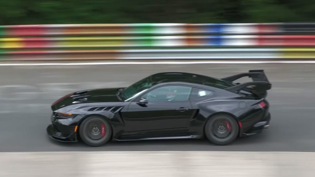 If you liked the video of Toyota’s GR GT3 racer testing at Belgium’s Circuit Spa-Francorchamps, settle in for more V8 thunder. As Ford prepares to contest 24 Hours of Le Mans with the Ford Mustang GTD, the automaker’s taken the pure-track version of its $325,000 pony car to the Nurburgring for testing. Car Spy Media did us all the favor of capturing three minutes of the shakedown, the soundtrack an operatic warm-up session for the coupe’s 5.2-liter supercharged V8. In road-legal form, Ford’s targeting more than 800 horsepower from the lump up front. For the race, GT3 regulations cap output at 600 horses.