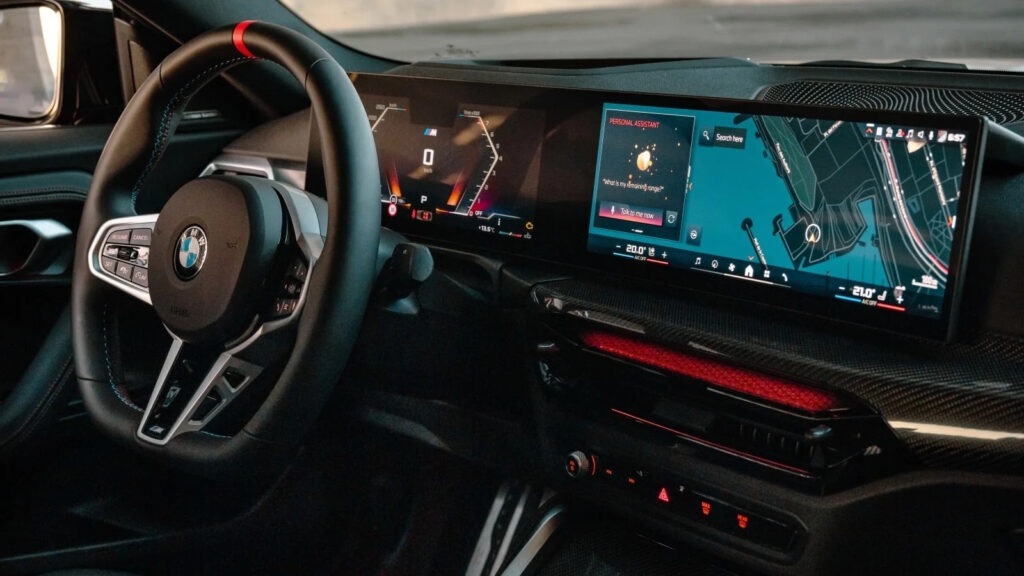 BMW’s big interior revision is a new center stack that integrates the brand’s latest air vent design and eliminates more buttons and controls in the cockpit. Directly above the new stack is an updated infotainment system now running iDrive 8.5, which is a big upgrade over the not-so-stellar iDrive 8 software. You’ll also notice enhanced ambient lighting that’s designed as a waterfall of light over top of the vents with nine colors to choose from.