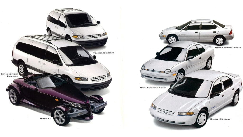 The first use of the Expresso name on a Plymouth came in the 1996 model year, when Plymouth Neon and Breeze buyers could get the Expresso Package for $375 (about $762 in 2024 dollars). The reviewer for Edmunds was scathing about “a new transparently-named Expresso package aimed at so-called Generation X buyers who supposedly spend all their time slacking off at the Coffee Plantation sipping java.” By 1998, every single Plymouth model except the Prowler could be Expresso-ized.