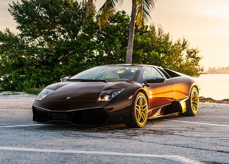 Before we go any further, yes, this Murcielago SV does feature the incredibly sought-after six-speed manual transmission, of which only six examples were ever produced for the world. This specific example stands out even further amongst its counterparts with a breathtaking Marrone Eklipsis, courtesy of the Lamborghini’s production facility in Sant’Agata. The unicorn configuration also showcases a wingless body design with a set of factory gold multi-spoke wheels, further cementing its status as a true one-of-one creation. Inside, the Murcielago SV’s cabin comes layered in rich brown Alcantara with contrasting beige, diamond-stitched sports bucket seats.