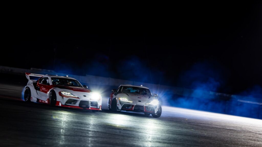 Somewhat surprisingly, both Toyota and Stanford have amassed a great deal of experience in autonomous drifting technology. Toyota built a Supra-based prototype in 2021, and Stanford taught a DeLorean DMC-12 how to drift in 2019. Sending two autonomous cars out at the same time has never been done, according to Toyota, and researchers say it’s far more difficult than it sounds. Keeping the two Supra-based test mules sideways, mere inches away from each other, without cracking plastic or bending sheetmetal required using artificial intelligence that learns the ins and outs of drifting lap after lap. The technology is capable of adapting to changing track conditions, for example.