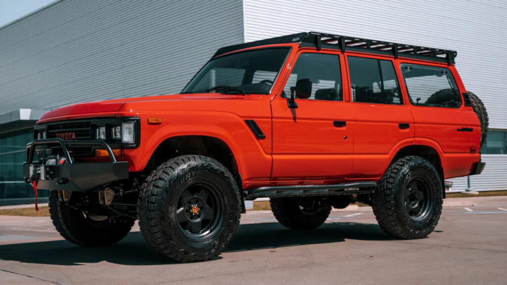 Inside, the dash comes painted in the same color as the body panels, offering a nice chance to color contrast with one’s color choice for the hand-stitched leather seating. Every rig gets air conditioning, plus the additional insulation that will hold cabin temperature better than the stock Land Cruiser. Familiar restomod luxuries show up here as well, like the Momo steering wheel, Sony or Alpine head unit with Bluetooth, backup camera, trailer wiring, LED lighting front and back, and an alarm system.