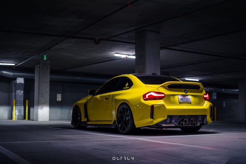 Beyond the changes to the body – which include carbon kidneys – this M2 also has yellow daytime running lights. Perhaps we’ll see this update straight from the factory in 2025 when the M2 CS is scheduled to come out. The integrated rear spoiler is confirmed for the Competiton Sport, albeit it won’t be as in your face as this.