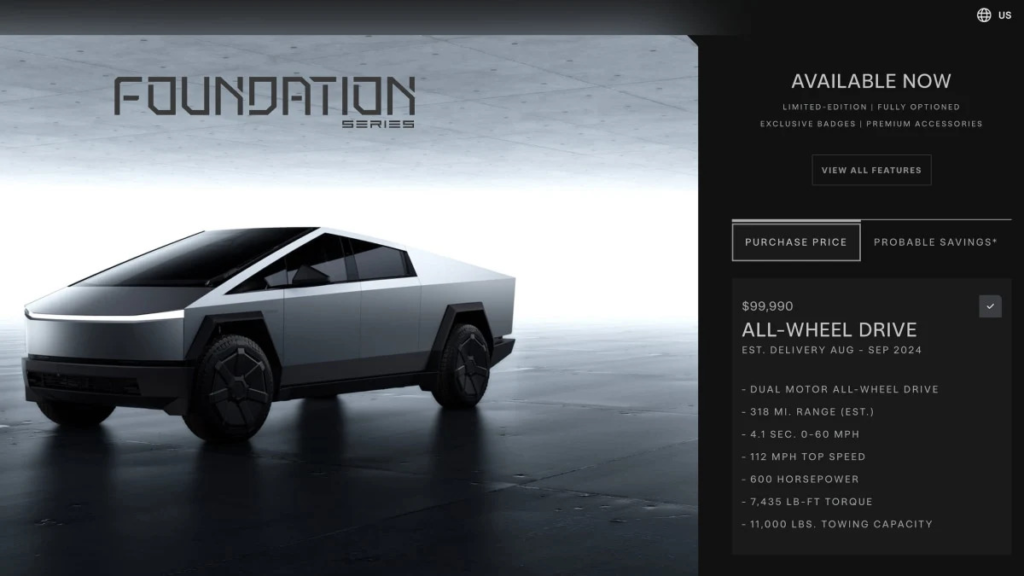 Tesla’s website no longer offers the option to reserve a $61,000 version of the Cybertruck, which previously had been offered with a 250-mile range and a targeted 2025 delivery. The $99,990 dual-motor variant Foundation limited series with a 318-mile range is estimated to be delivered as early as this month while the $119,990 tri-motor Foundation Cyberbeast with a range of 301 miles is available from October.