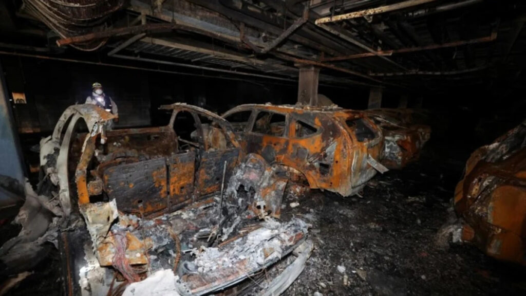 Images in media of cars destroyed with only their metal frames remaining in the parking lot fire have fueled consumer fears about EVs, likely exacerbated because so many people in South Korea live in apartments, often with parking lots below.