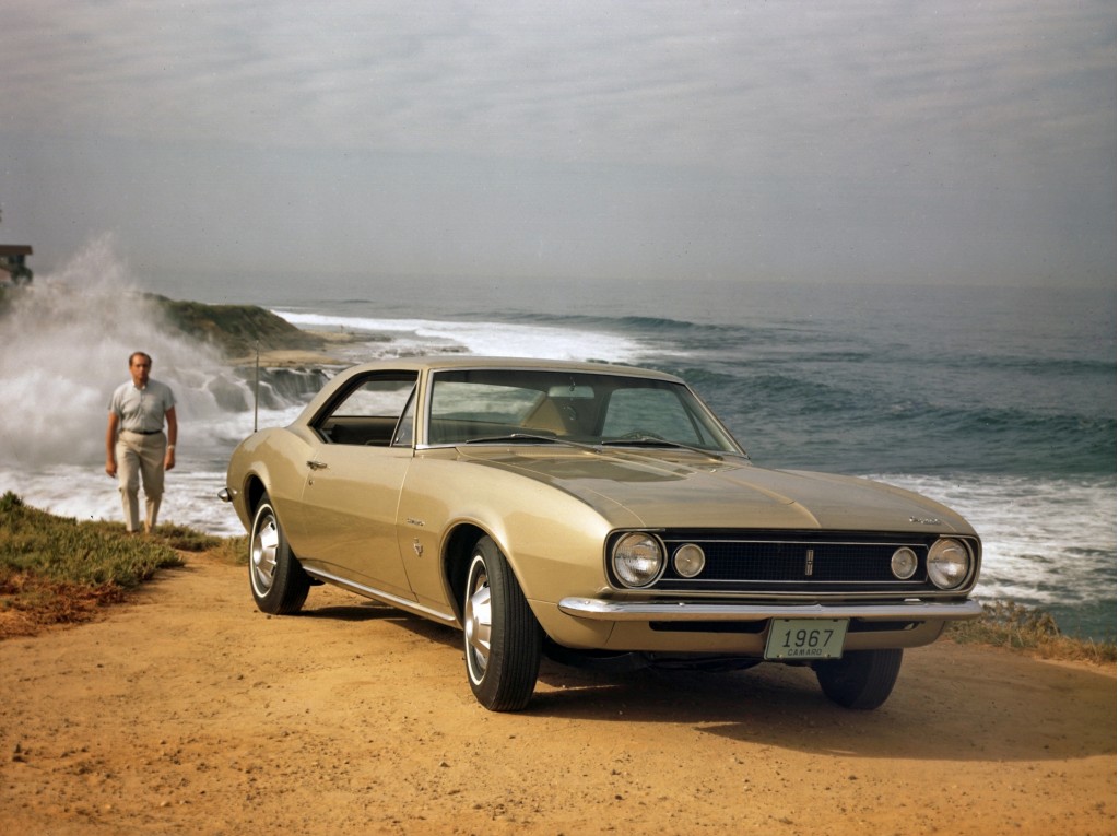 The Camaro made its debut on Sept. 12, 1966 as a four-seat coupe and convertible. It is widely viewed as a reaction to the immensely popular Ford Mustang of 1964, but Chevrolet had been toying with the idea since 1962. The car was based on the upcoming next-generation Chevy II/Nova unibody platform with a front subframe. The base price was $2,466, and like the Mustang, it was a pony car with large a choice of inline 6-cylinder and V-8 engines stuffed into a compact package. The most powerful standard-line Camaro was the 325-hp SS396, but a limited number of special-order SS396s cranked out 375 hp. Chevrolet sold 220,917 Camaros that first year while Ford sold 472,121 Mustangs.