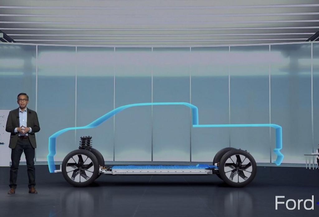 Electric Ford F-Series outline from Ford Capital Market Day presentation via Mike Levine on Twitter