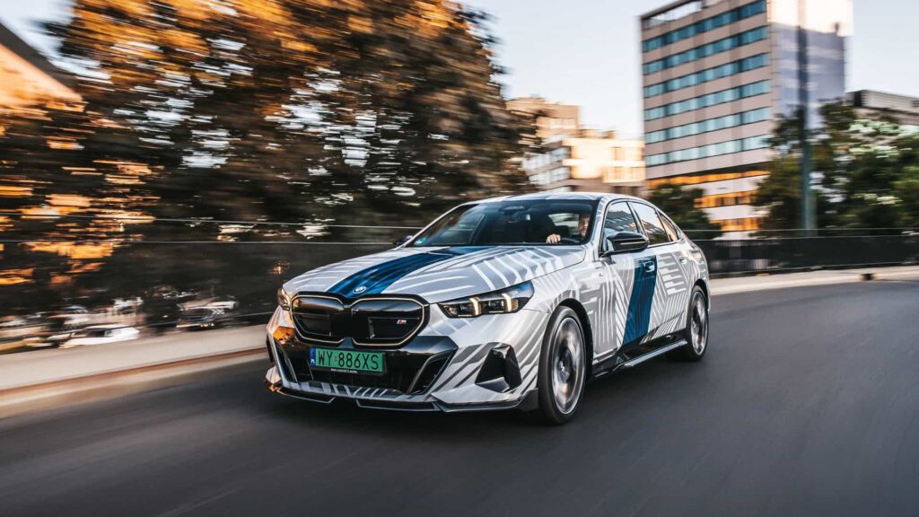 We’re used to seeing M Performance Parts on smaller BMWs but the latest 5 Series has them as well. This G60-generation luxury sedan is a fully electric i5 equipped with optional goodies. As you can tell by the M badge on the kidney grille and the sporty-looking side mirror caps, it’s an M Performance version. BMW Poland has decked out an i5 M60 for a new photo shoot.
