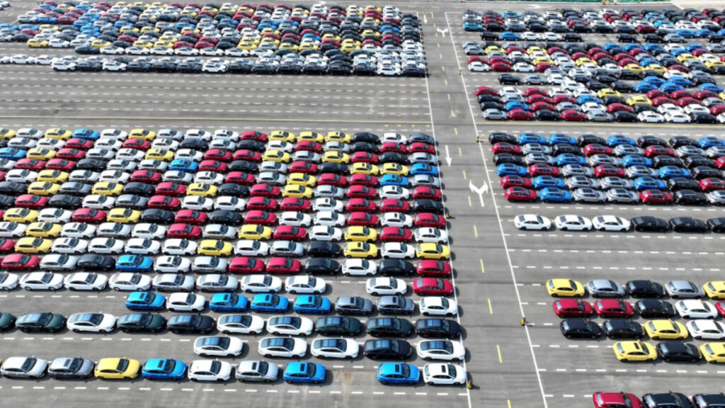 Chinese-built cars waiting to be loaded earlier this month at the port of Lianyungang, China. Cars from China offloaded in Vancouver, B.C., were up 460% in 2023 from the previous year. (Getty Images)