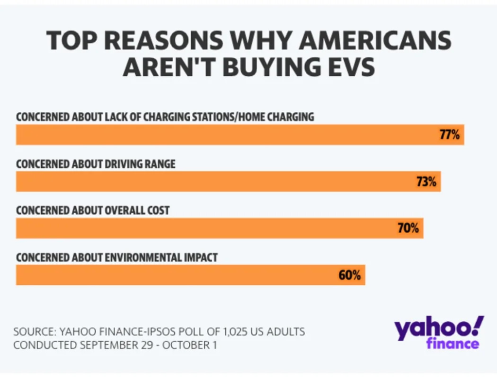 And a huge component of that is charging. A Yahoo Finance-Ipsos poll conducted in late 2023 found that the main reason Americans are holding back from buying an EV is a lack of charging stations or home charging, with 77% of respondents stating that concern.