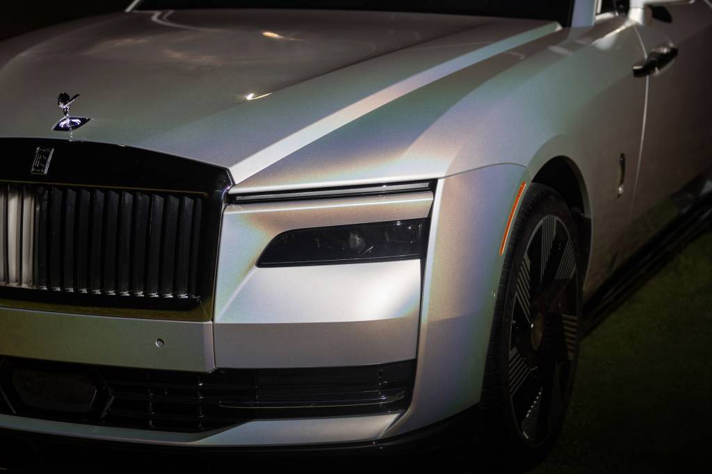 With those two muses in mind, Rolls-Royce gave the electric coupe color-shifting paint that creates a rainbow-like effect in bright sunshine, with a deep metallic appearance under low light, and took over a year to perfect. The final version involved seven layers of lacquer—including one specially formulated pearlescent layer—infused with flakes of magnesium fluoride and aluminum.