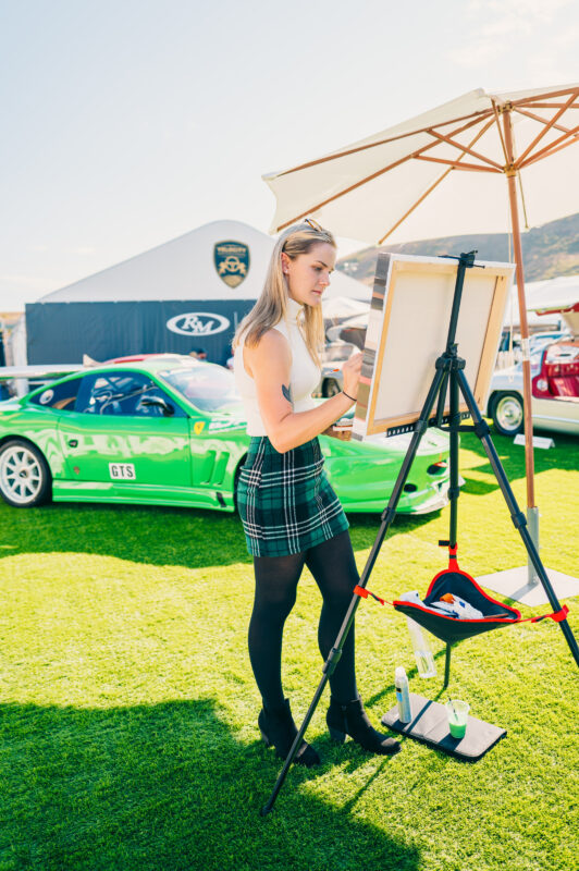 How do you make your car stand out from the crowd to ensure maximum exposure while it’s up for auction? Sotheby’s Motorsport not only took a car to Velocity Invitational, the three-day motorsports and lifestyle event at Sonoma Raceway, but commissioned renowned motorsport artist Samantha Zimmermann to create a bespoke illustration, painted live at the racetrack.