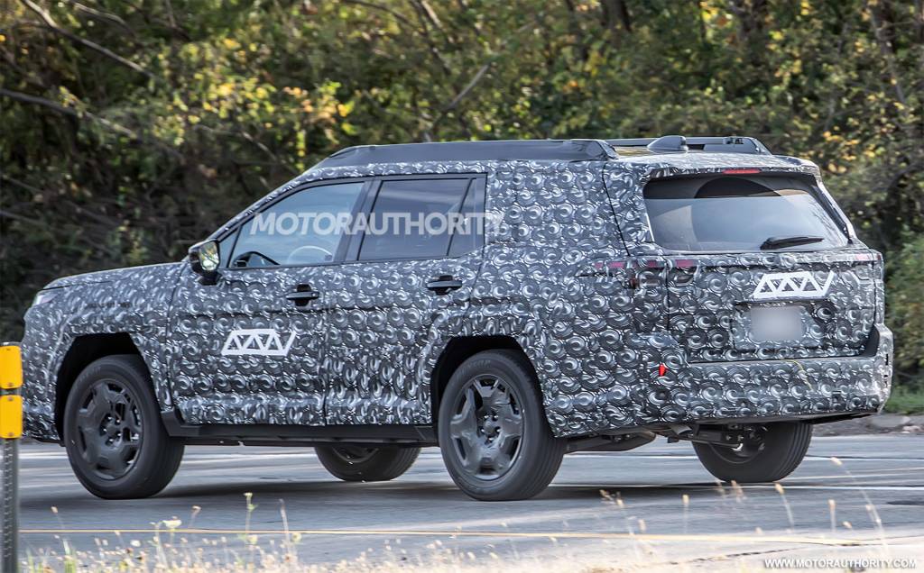 New design details include split headlights, a flat roof, and what appears to be five individual side windows, just like the current Outback, as opposed to the four-window design of Subaru’s Forester and Ascent.