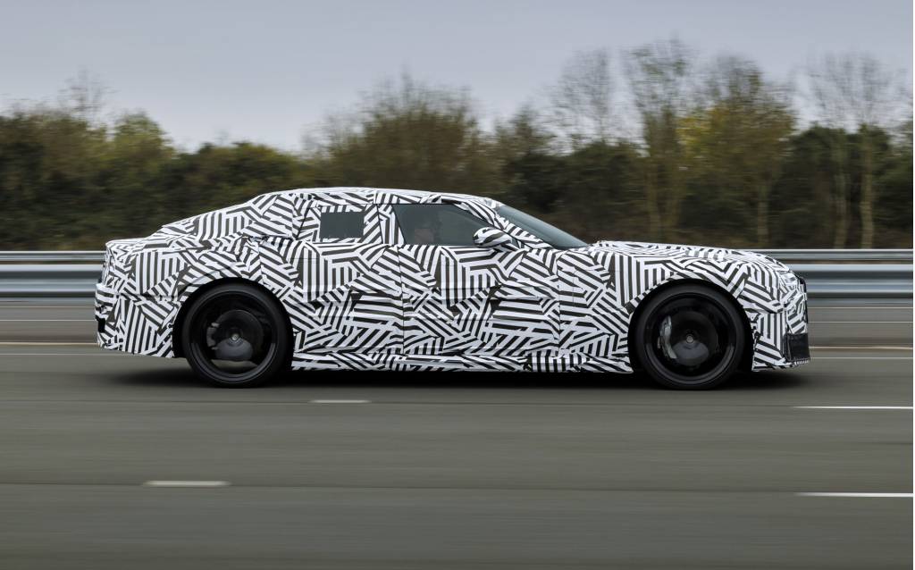 The automaker on Thursday showed a heavily camouflaged prototype of a four-door grand tourer that will be the first of an expected lineup of three vehicles.