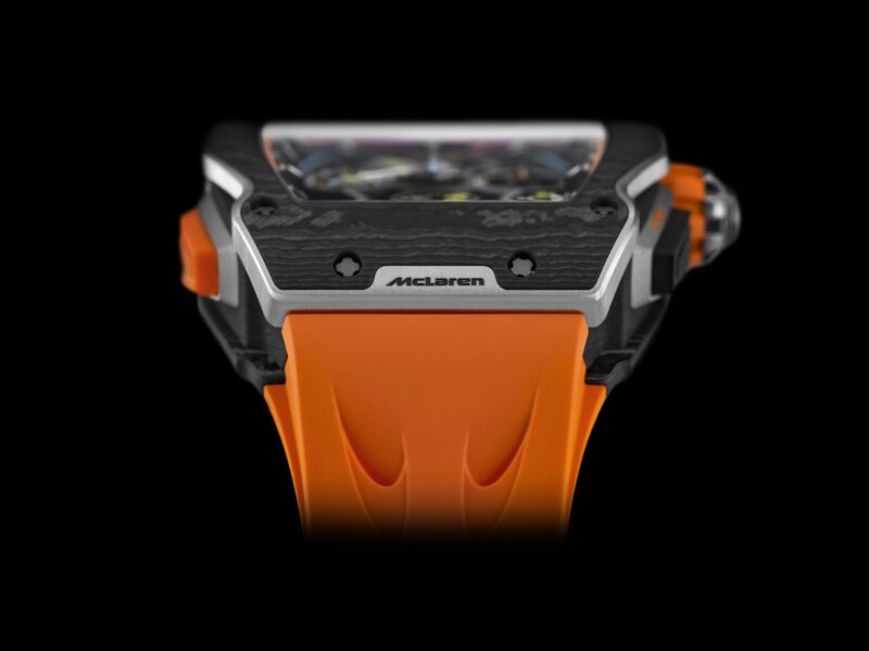 Richard Mille and McLaren have once again teamed up to bring motorsport to the wrist with its all-new RM 65-01 McLaren W1. The RM 65-01 McLaren W1’s design is heavily inspired by McLaren’s W1, with a lightweight Carbon TPT case that mimics the car’s sleek aero-cell look. The watch’s intricate bezel, crafted from Carbon TPT and titanium, draws from the muscular shape of the W1, with the pushers and crown also mirroring design elements from the car. Every characteristic of the watch, from its shape to its materials, reflects McLaren’s attention to detail, making this a true “racing machine for the wrist.”