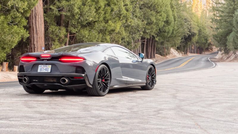 Dial back traction control, and you’ll get plenty of sideways action as the GTS’s V8 reaches peak boost pressure. Despite its grand-tourer label, McLaren’s softest offering won’t hesitate to bite back should you not treat its throttle with the respect it deserves. Remember that the GTS still hits 60 mph in 3.2 seconds, 124 mph in 8.9 seconds, and tops out at 203 mph.